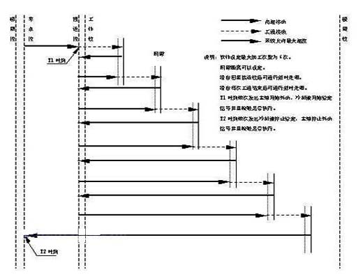 软件设定的“互锁”信号分为“锁定对方”(输出)信号和“响应锁定”(输进)信号,当IMS控制器控制驱动电机将钻台推进至接近中心线的某位置时(软件设定),控制器会向另外一台控制器给出“锁定对方”信号。对方控制器接受到“响应锁定”信号后,如正工作在安全区内,则正常运行;如正在向前推进并有可能发生打刀情况,则执行“暂停”动作使钻台停留在安全范围内直至“响应锁定”信号消失。发出“锁定对方”信号的控制器在所控制的钻台回退至安全范围后,将“锁定对方”信号取消以便另外一侧钻台的正常运行。两台控制器本着“先进为主”的原则进行互锁动作以保证加工时的高效率输出。