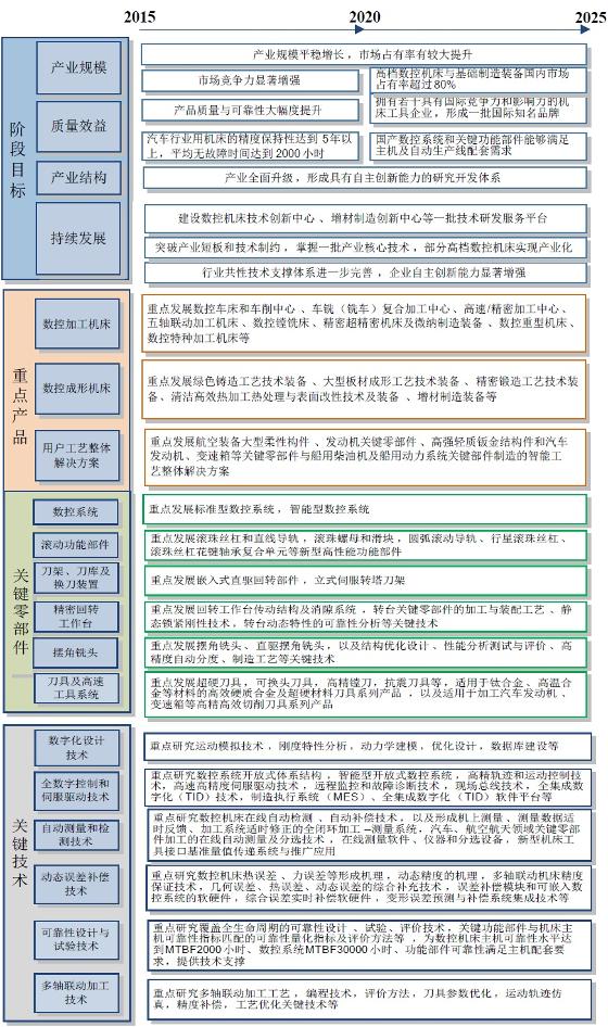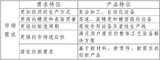 目前,我国机床市场需求进入结构换挡升级期。市场需求向自动化、成套、客户化定制方向发展,高档数控机床成为机床产业的制高点。国民经济重点领域发展对机床需求分析汇总,见表1。