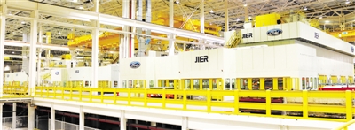 同时,济南二机床产品还成线出口到美国、巴西、印度等海外汽车主机厂,为通用、福特等国际知名汽车企业提供海外总承包交钥匙工程,被誉为“世界三大数控冲压装备制造商”之一。依托重大专项成果转化,福特汽车美国4个工厂,先后4次订购济二9条大型全自动快速冲压生产线。其中,8条已经完成安装调试交付用户使用,1条即将运抵美国。福特汽车美国工厂将济二生产线与德国生产线用同样的模具、零件进行全面的精密对比检测,结果显示,济二的冲压件质量,所有指标达到用户要求,部分指标优于德国冲压件。济二冲压线在福特最畅销的F-150新兴铝板皮卡及其他车型的冲压生产中起到关键作用。