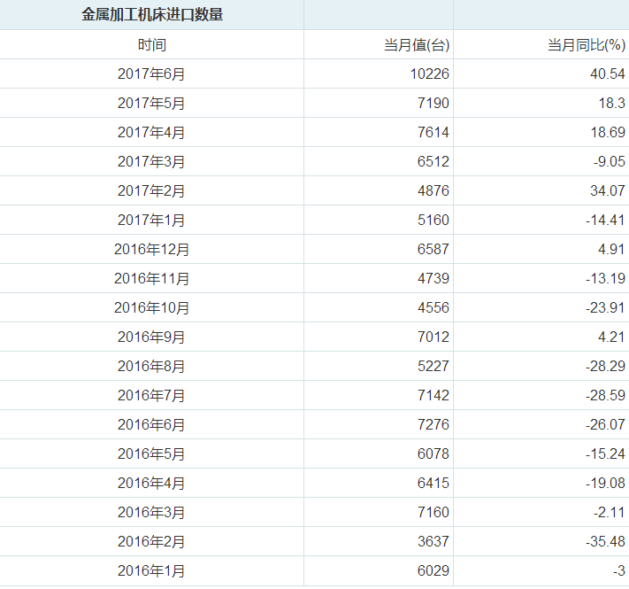 ¡¡¡¡¾Ýǰհ²úÒµÑо¿ÔºÊý¾ÝÏÔʾ£¬2017Äê6ÔÂÎÒ¹ú½ðÊô¼Ó¹¤»ú´²½ø¿ÚÁ¿Îª10226̨£¬½ø¿ÚÁ¿Á½ÄêÀ´Ê×´ÎÆÆÍò£¬Í¬±ÈÔö³¤40.54%£¬ÔöËÙÒ²ÆÆ¼Í¼´´Ð¸ߡ£